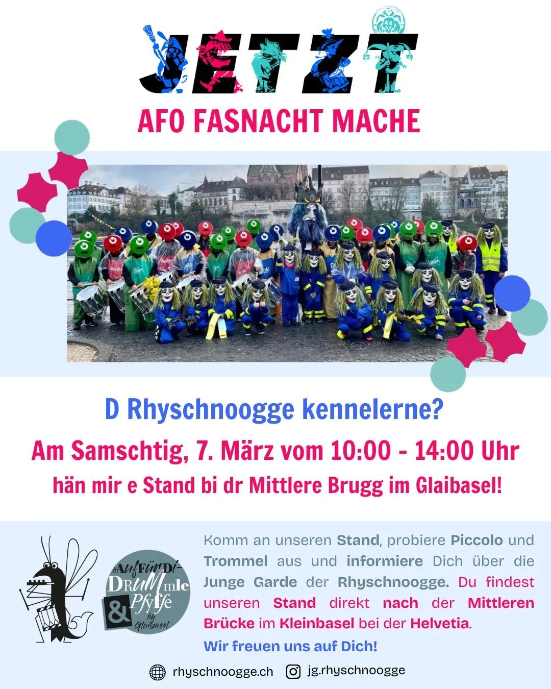 Syt 50 Joor hänn mir unseri jungi Garde mit ere aigene Pfyffer- und Drummelschuel fir Maitli und Buebe ab 7 Joor. Aggtuell sinns ebbe 45 jungi Fasnächtler. Giebt wird an de Mittwuch im Schuelhuus «Mugge» uffem Minschterblatz.